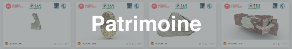 La collection «patrimoine» représente l’ensemble des échantillons de tectonites ayant été utilisés dans des articles scientifiques ou des thèses. La collection est étroitement liée au travail de recherche en géologie structurale effectué au laboratoire Géosciences Montpellier.